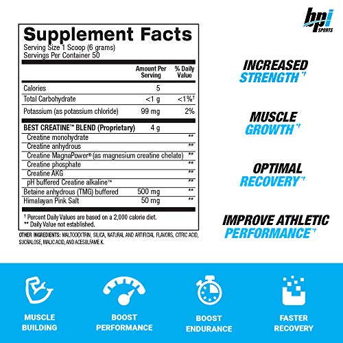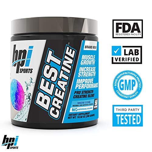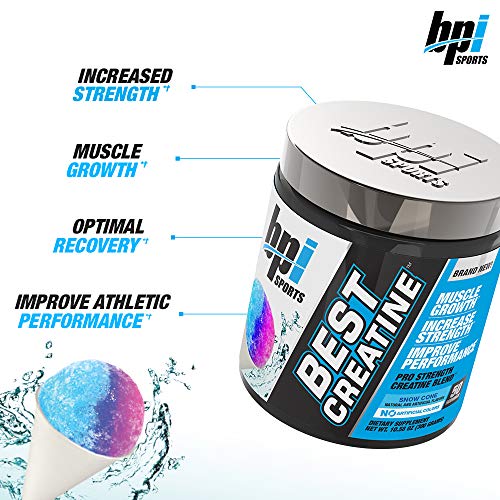 BPI Sports Best Creatine – Creatine Monohydrate, Himalayan Salt – strength, Pump, Endurance, Muscle Growth, Muscle Definition – No Bloat – Snow Cone – 50 servings – 10.58 Oz