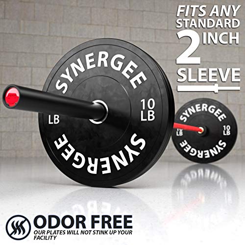 ★ UNLIMITED VERSATILITY ★ – Whether you are purchasing plates to go with your Synergee Barbells or to use on their own, they bestow innumerable options. From well-known squats, deadlifts, and presses, to lesser-known halos, raises, twists, and plyo moves, one order of Synergee Bumper Plates brings 100’s of new exercises into your workout routine. Perfect for home gyms, CrossFit boxes, and school weight rooms.