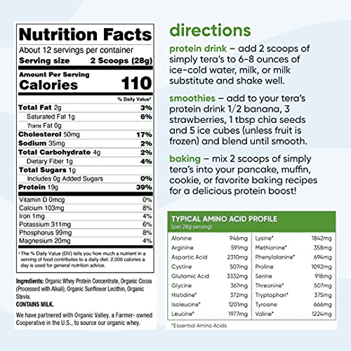 Tera’s Whey Organic Protein, Dark Chocolate, 12 oz